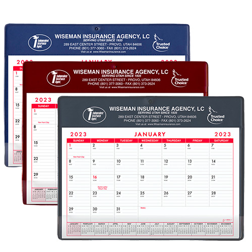 More than just a calendar, this desk accessory doubles as an organizational tool and a lasting reminder of your brand. The sturdy design includes a heavy cardboard backer that keeps the calendar firm and in place, even with frequent use. Proudly made in the USA, these custom desk pad calendars combine function and quality for a polished professional gift.