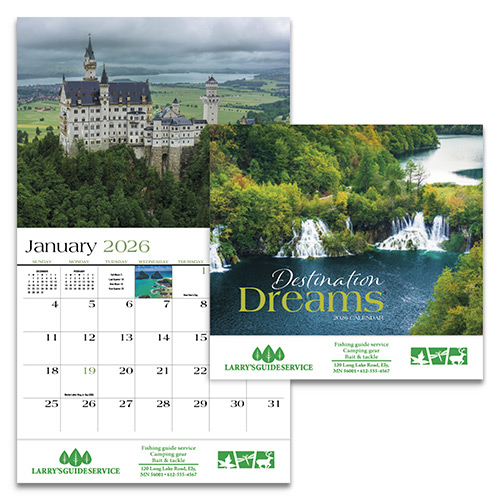 Take your brand around the world with the Promotional Destination Dreams® Appointment Custom Calendar 2026. Each month showcases breathtaking travel destinations around the world, making it a perfect pick for travel agencies, hospitality businesses, real estate firms, and brands that want to inspire clients daily. Printed in the USA on FSC® and SFI® certified paper, this calendar combines stunning imagery with sustainable production. These promotional calendars will keep your brand top-of-mind while fueling their wanderlust.