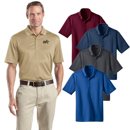 This classic polo is designed for performance, comfort, and long-lasting logo visibility.