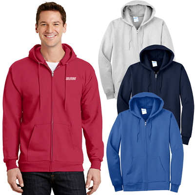 Give your brand a cozy and stylish edge with the Port & Company Essential Fleece Full-Zip Hoodie, the perfect blend of warmth, softness, and style. This custom zip hoodie is made from pill-resistant fleece and features a smooth YKK metal zipper for easy layering. It’s a versatile promotional favorite giveaway item ideal for employee uniforms, campus events, team apparel, or winter giveaways.
