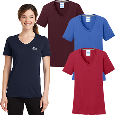 The imprinted Port & Company Ladies Blend V-Neck Tee will leave a lasting impression on your customers