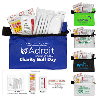 • Zippered pouch contains 1 Golf Divot Tool, 5 Golf Tees, 2 Ball Markers