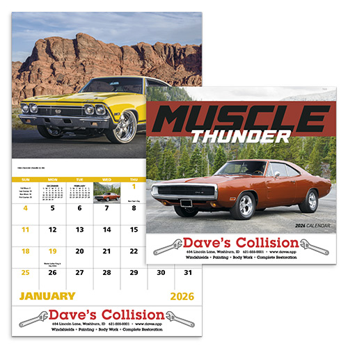 From the roar of the engine to the gleam of the chrome, every month showcases a classic American muscle car in high-quality, full-color detail. With your custom logo prominently printed on each page, your brand will stay parked in the minds of your customers all year long.