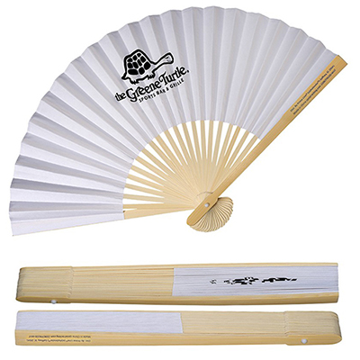 This visually appealing folding fan has a frame crafted out of eco-friendly and naturally sustainable bamboo. It is essentially made of heavy paper with smooth bamboo frame ribbing. The large imprint area makes this product hugely successfully among our buyers. It is the perfect product to beat the heat!