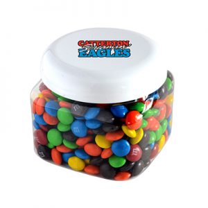 This canister is sealed with unlimited freshness! It features 8 ounces of plain, colorful and delicious M&Ms! Leverage the brand power associated with M&Ms for your marketing campaign! The canister can be re-filled with other delicious goodies or kitchen essentials.