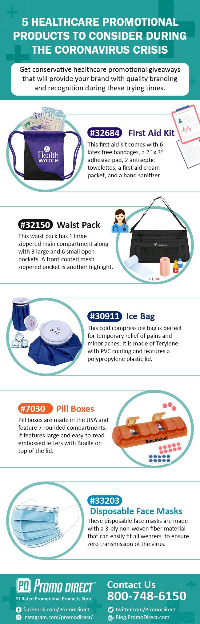 Featured here are some of the best healthcare promotional items that will give your branding efforts a big boost during these hard times. We carry face masks, hand sanitizers, first aid kits, pillbox, waist pack and lots more to ensure the safety of everyone.