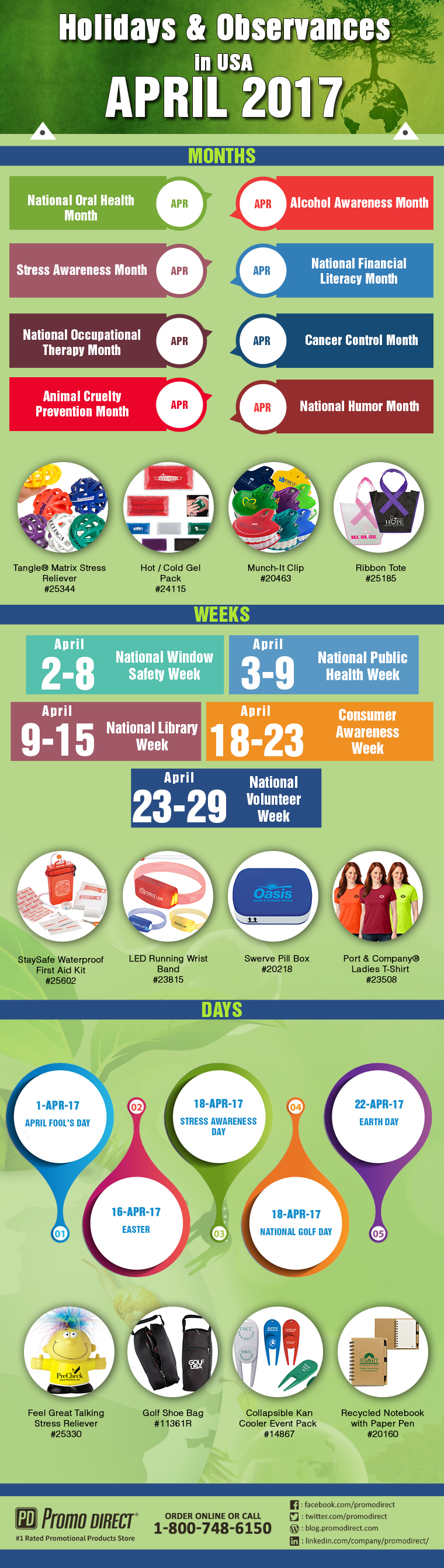 Holidays and observances are a great opportunity for businesses to launch a memorable marketing campaign. The following infographic outlines some important holidays coming up in April. Use it to plan your marketing initiatives and make your brand a winner!