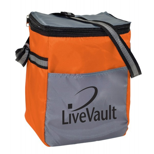 This cooler is exceptionally stylish, with its two-tone color. It is made of 210D polyester and features 3mm foam insulation to keep beverages chilled for hours during trips. It can hold 12 cans. A front grey pocket adds to the bag’s visual appeal. The adjustable handle ensures the bag can be carried around with ease.
